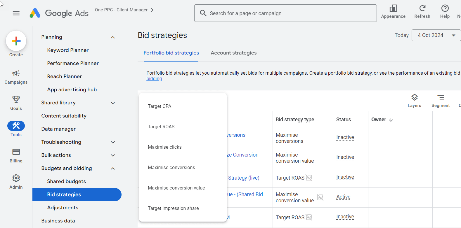 Here’s a breakdown of the key automated bidding options: